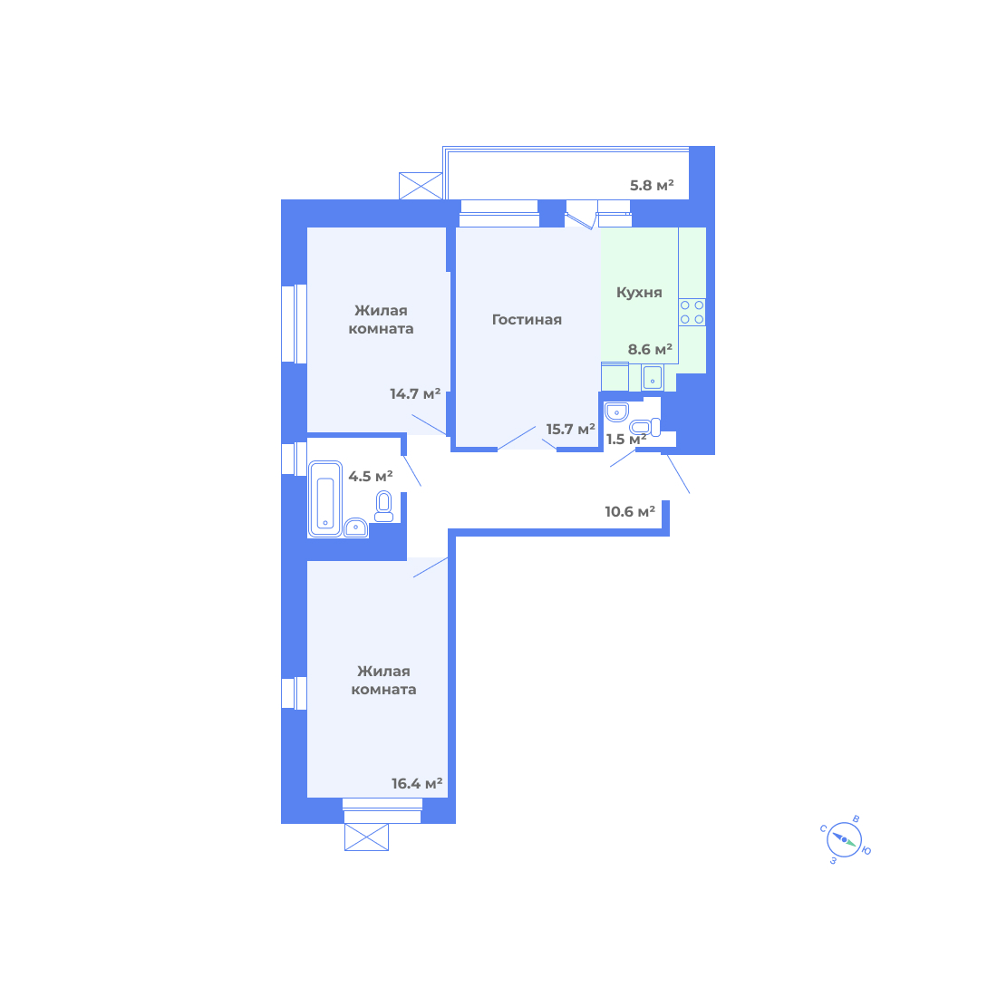 Квартиры представлены в современных планировках от студий до пятикомнатных, площадью от 33,9 м² до 135,7 м².