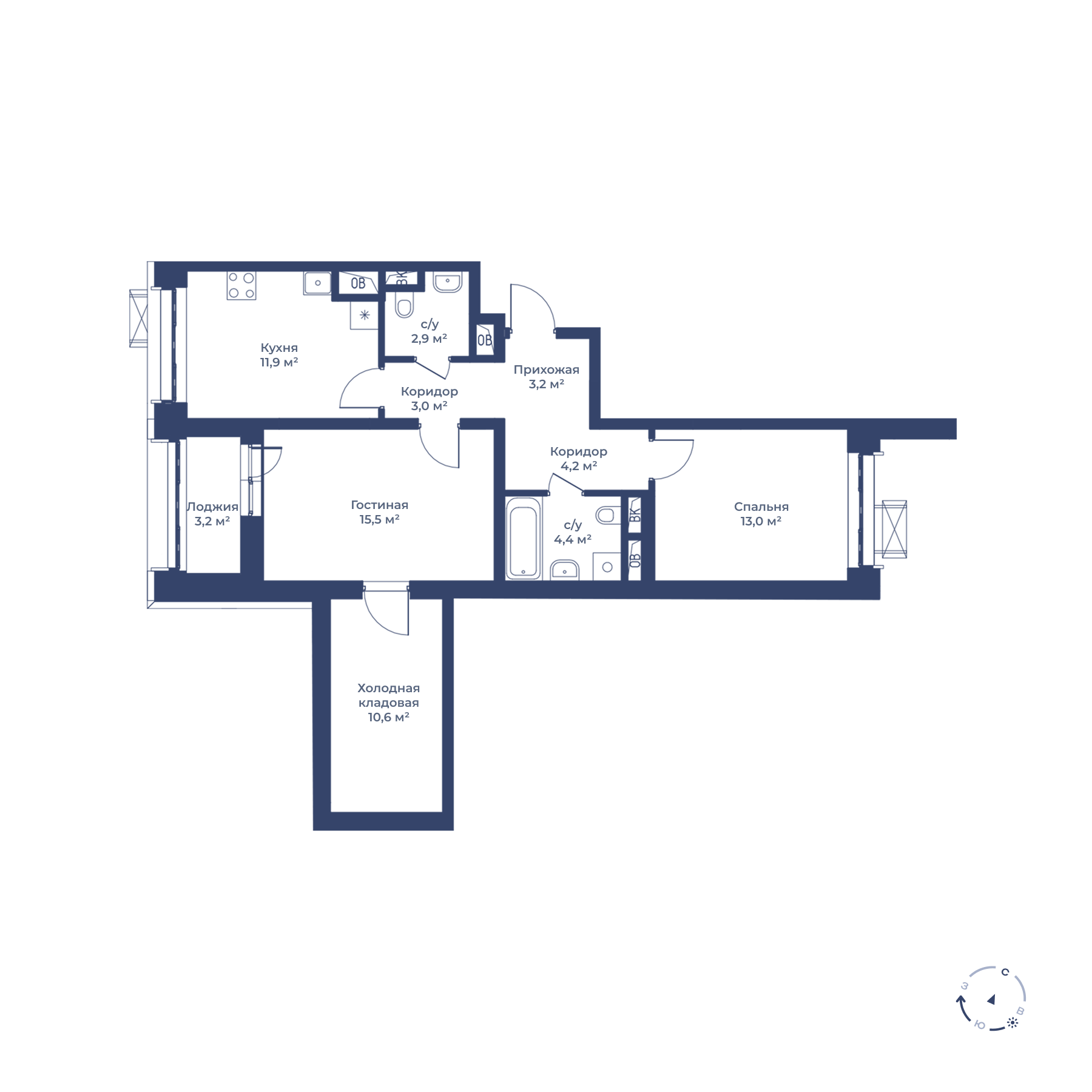 2-комнатная 70,3 м²